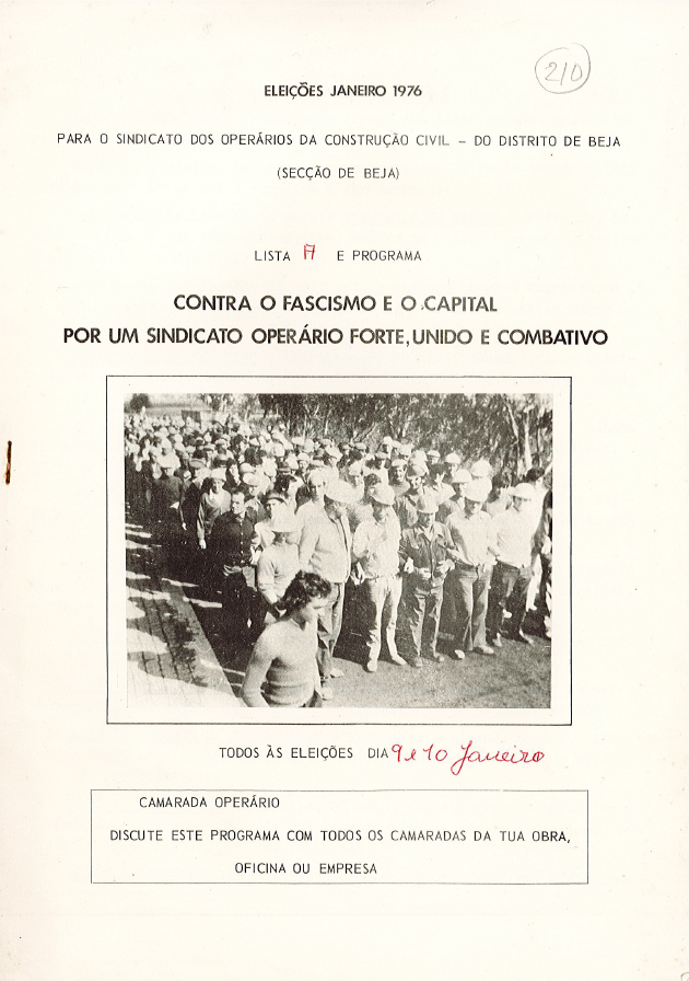 Joaquim Lemos, o mais votado, com 288 votos, vai ser o líder deste processo organizativo dos trabalhadores da construção civil, bem como, posteriormente, das direções da delegação de Beja do Sindicato da Construção Civil resultantes das eleições de 1975 e de 9 de janeiro de 1976.