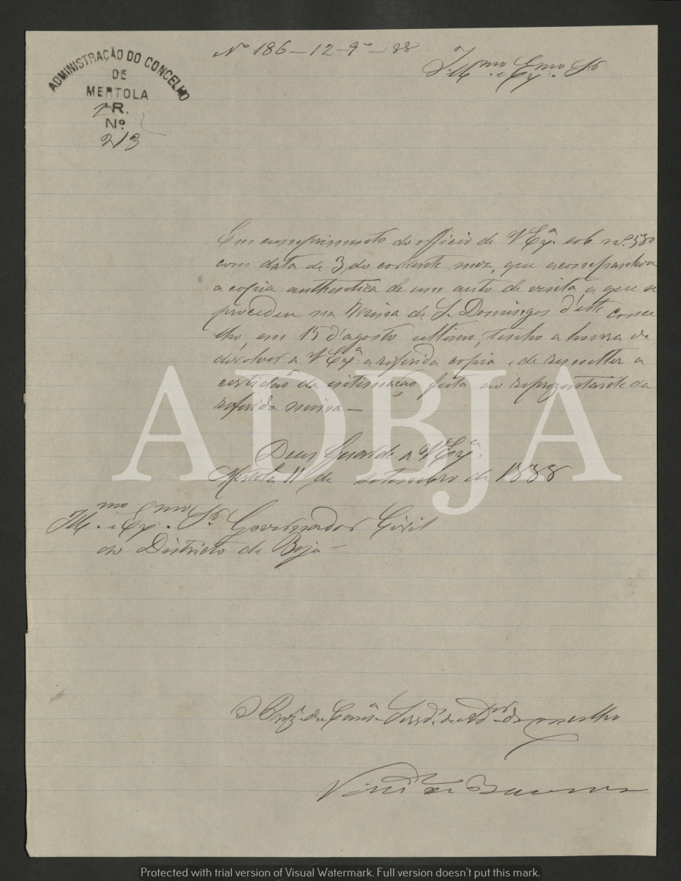 Código de referência: Correspondência Expedida e Recebida do Administrador do Concelho de Mértola – ano de 1888