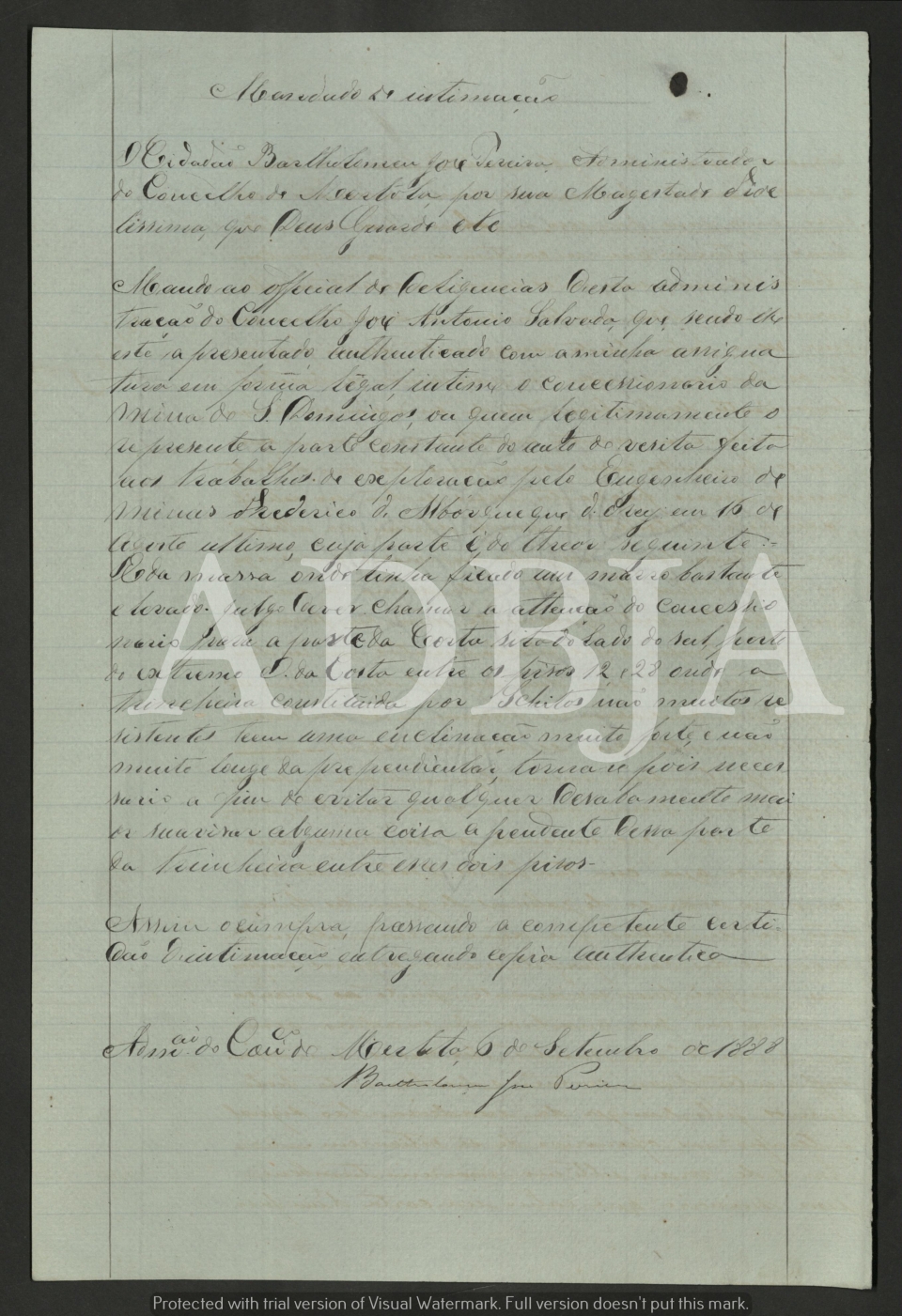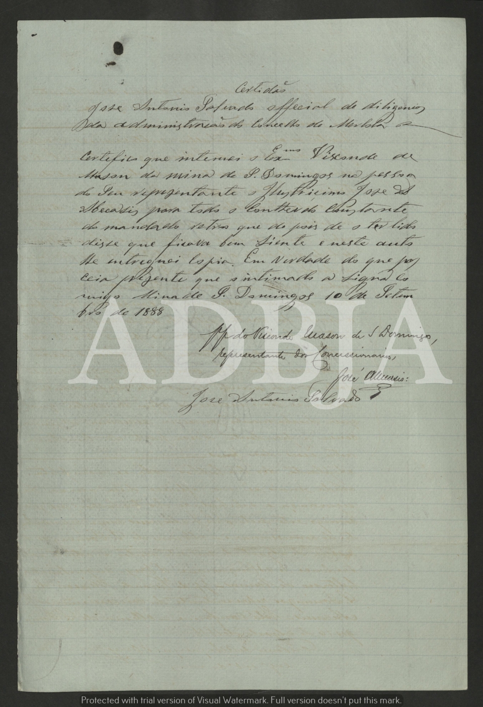 Título: Auto de visita à Mina de São Domingos e Mandado de Intimação