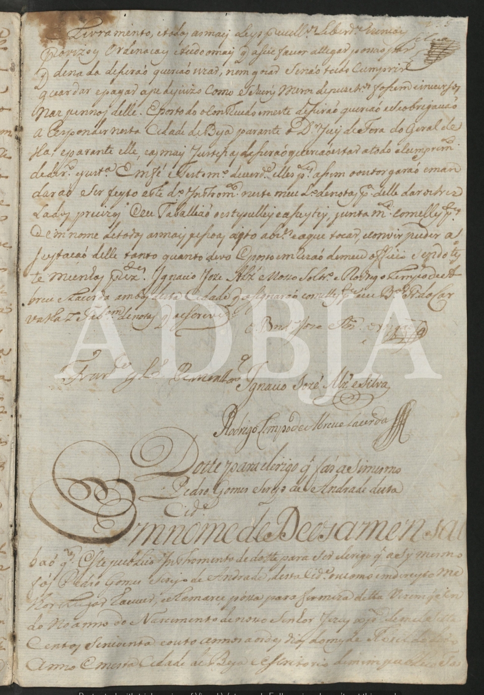 O documento apresentado respeita a uma escritura de dote para clérigo que faz a sim mesmo Pedro Gomes Sereyo de Andrade de dote morador na cidade de Beja.