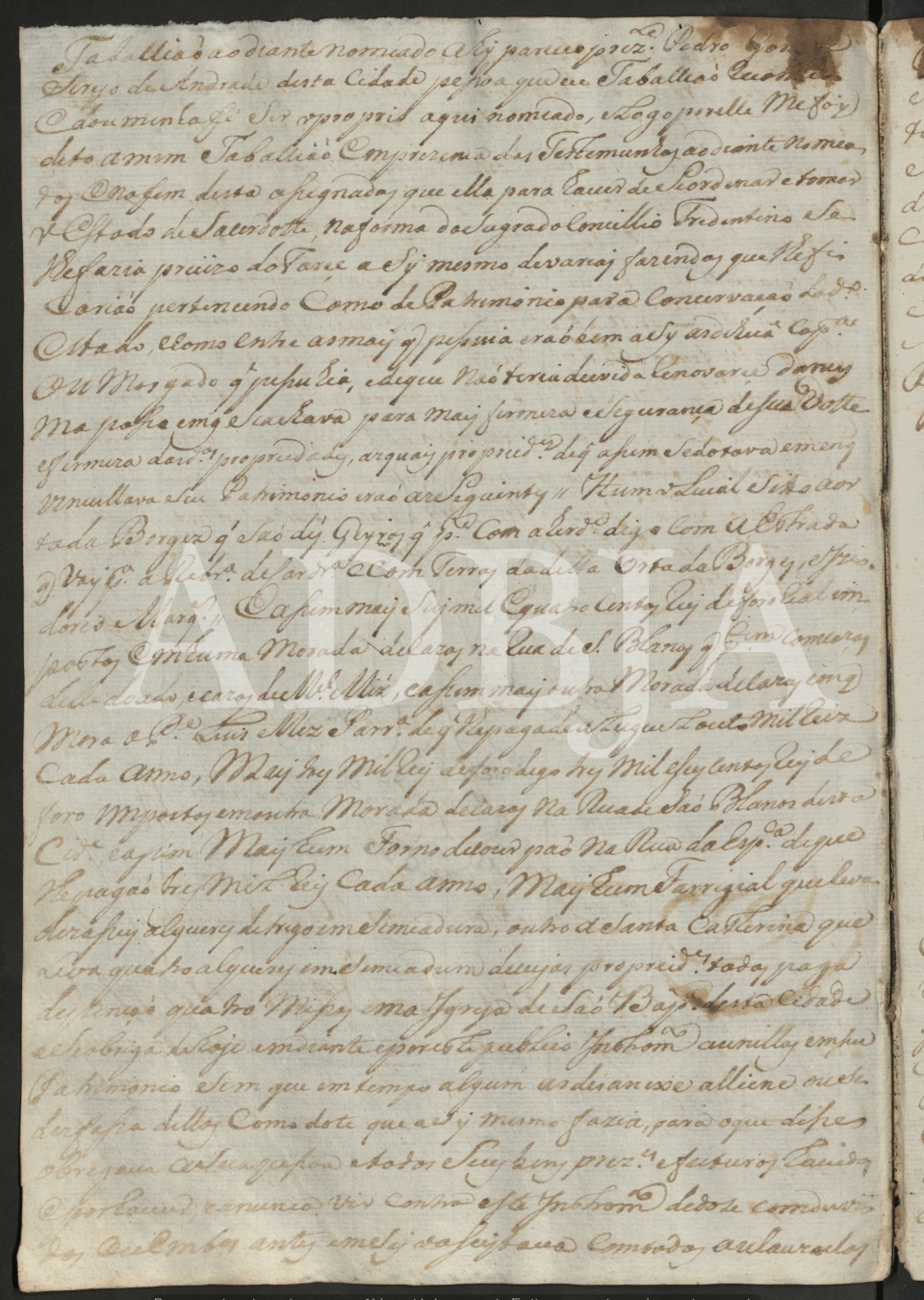 Pedro Gomes Sereyo de Andrade pretendia tomar o estado de sacerdote na forma do sagrado Concílio Tridentado, daí ser necessário “fazer a si mesmo várias fazendas que lhe ficaram pertencendo como património para a conservação do estado” e “para firmeza e segurança do seu dote”.
