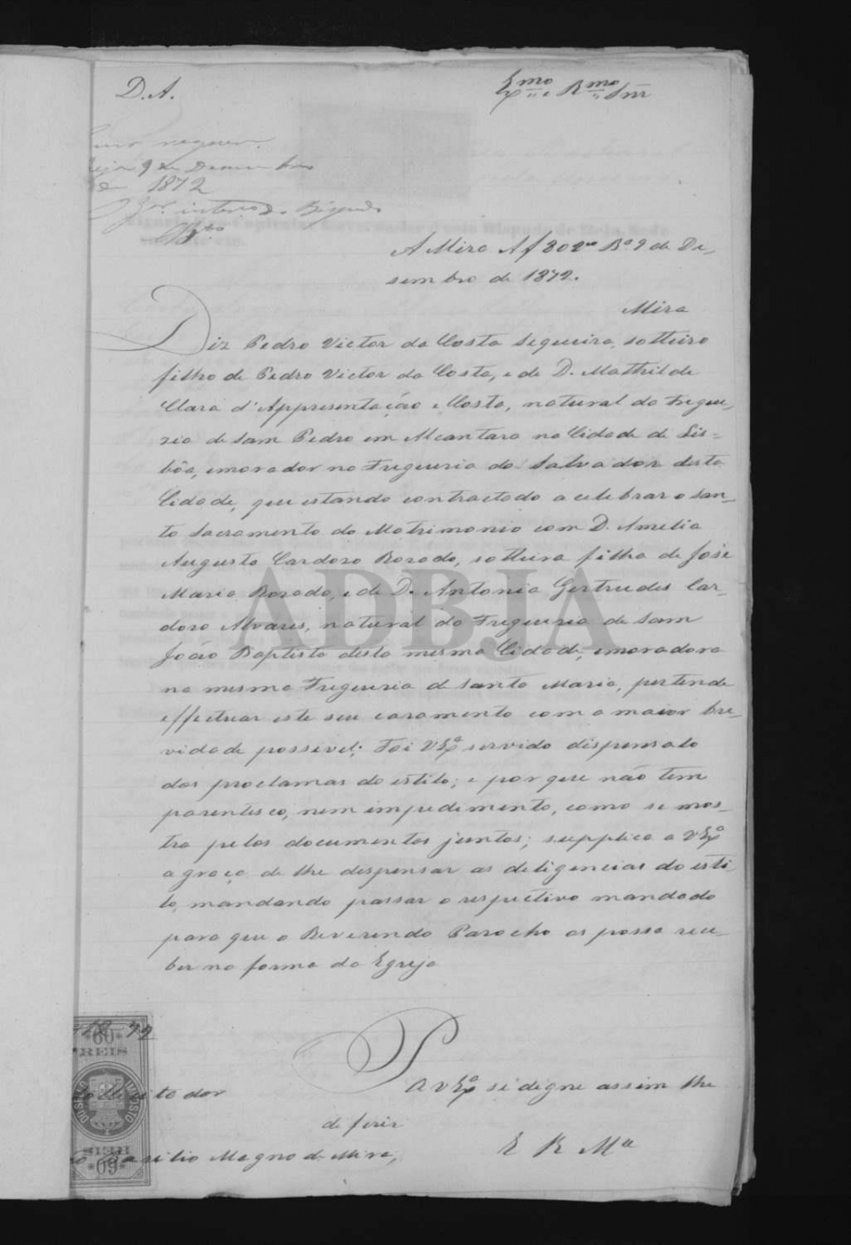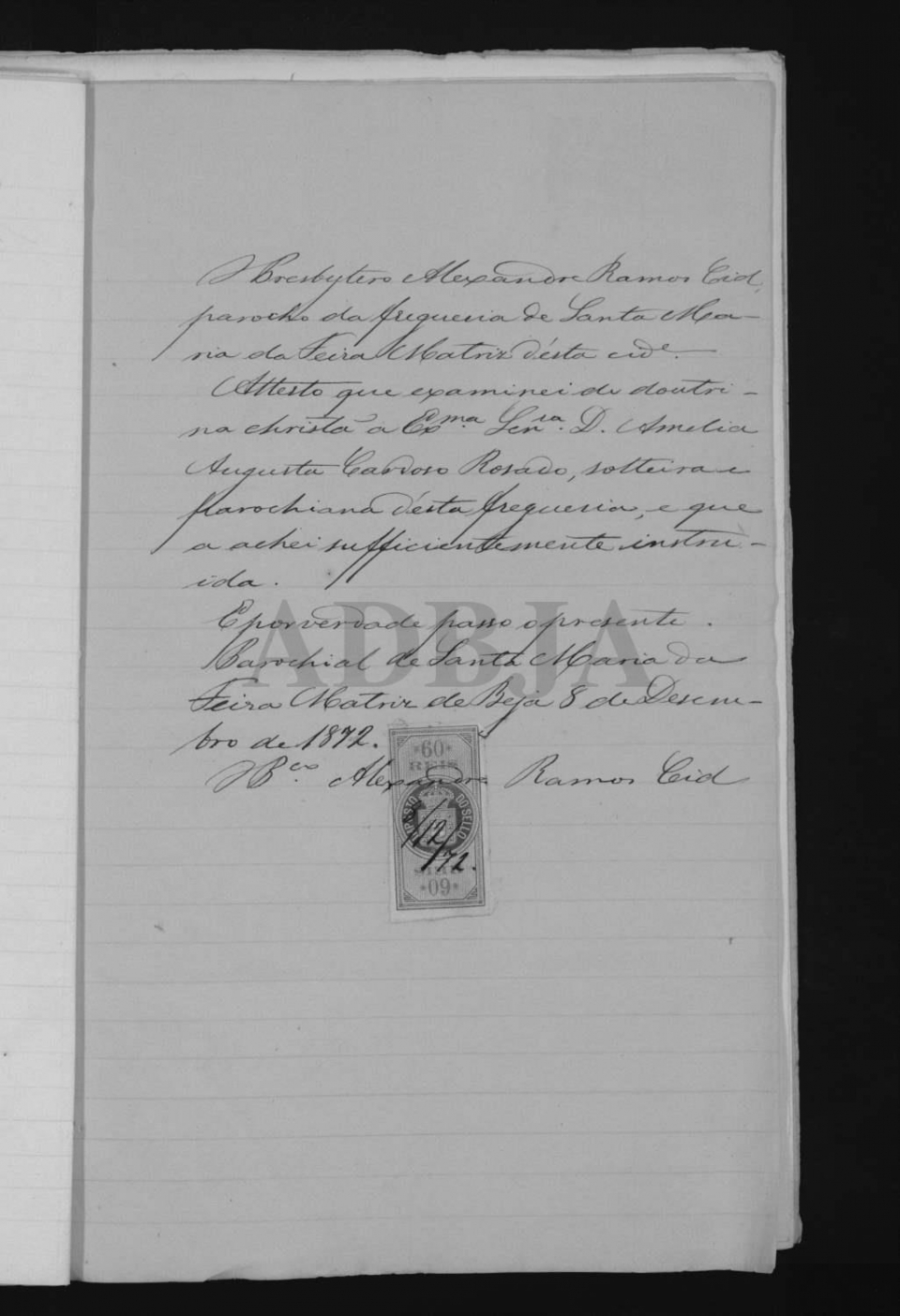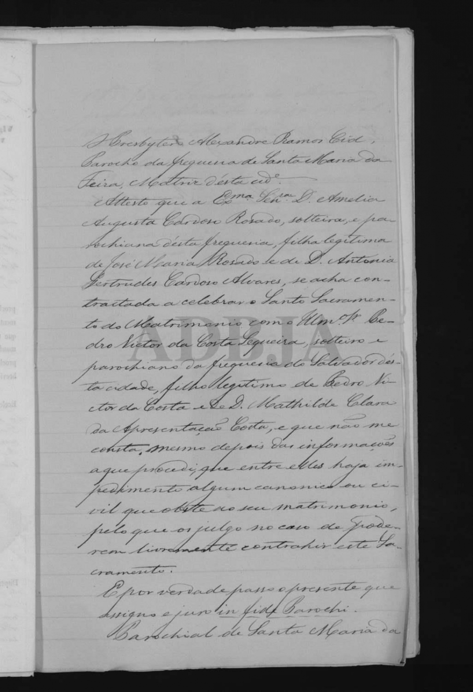 Processo de casamento de Pedro Victor da Costa Sequeira e D. Amélia Augusta Cardoso Rosado
