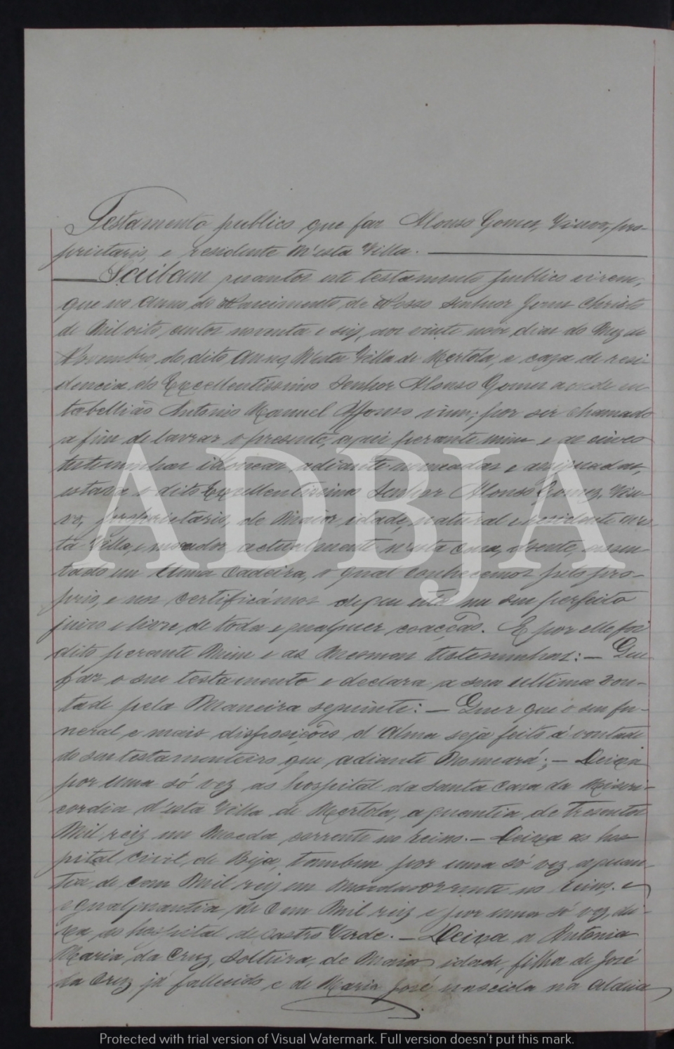 Aos vinte e nove dias do mês de novembro na vila de Mértola na presença do tabelião António Manuel Afonso foi celebrado o testamento do Excelentíssimo Senhor Alonso Gomes.