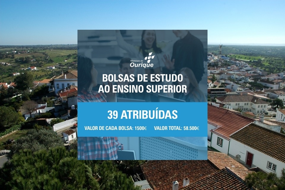 O Município de Ourique anunciou que foram aprovadas 39 candidaturas ao programa de Bolsas de Estudo para o Ensino Superior. O investimento da autarquia, para o ano 2024/25, é superior a 58 mil euros e visa "promover a igualdade de oportunidades e valorizar o talento jovem do concelho".