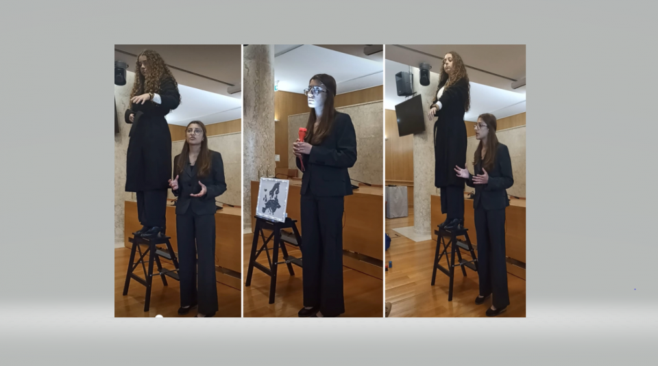 Na sessão nacional, a abordagem é apresentada oralmente, de forma criativa, perante um júri, este ano, constituído por Cristiana Ferreira, Deputada à Assembleia da República, Katalin Gonczy, representante do Gabinete do Parlamento Europeu em Portugal e Ana Rita Moreira, representante da Associação All4Integrity.