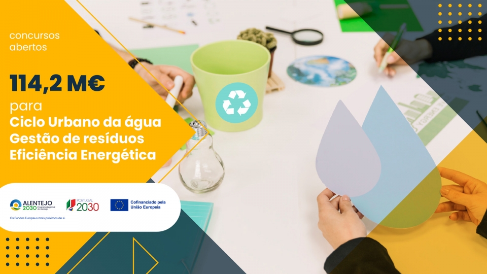 O programa Alentejo 2030 lançou seis avisos de concurso, com uma dotação global de 114,2 milhões de euros, para projetos de melhoria de gestão de água e resíduos e de eficiência energética na região, foi hoje anunciado.
