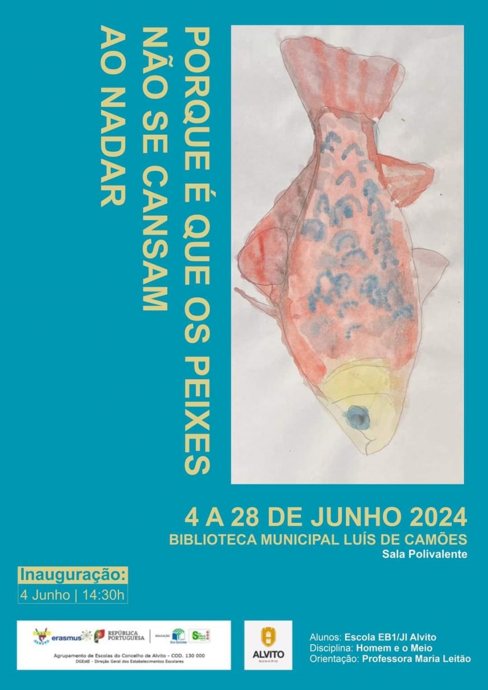 Até ao dia 28 de junho, a exposição "Por que é que os peixes não se cansam ao nadar?" está patente no local e resulta do trabalho dos alunos da Escola EB1/JI Alvito.
