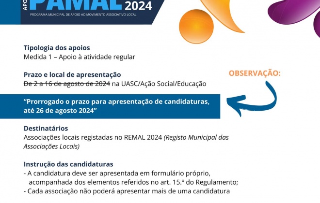 O município informa ainda que cada associação só pode apresentar uma única candidatura, devendo esta ser feita em formulário próprio, até ao dia 26 de agosto.