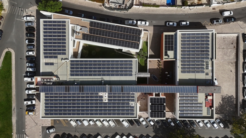A instalação fotovoltaica permite a produção de energia elétrica para autoconsumo, reduzindo significativamente a dependência da rede e os custos operacionais associados ao seu funcionamento diário, nomeadamente climatização, equipamentos técnicos, sistemas de IT e carregamento de veículos elétricos.