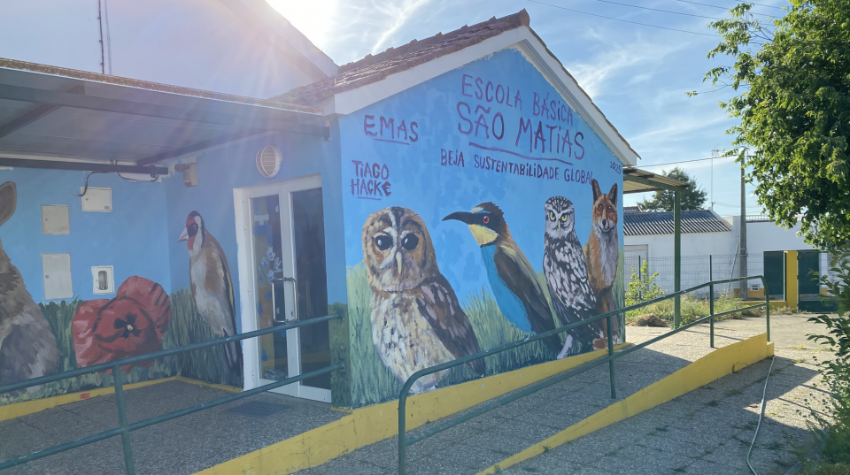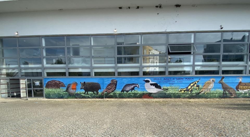 A Escola Básica de Santa Maria, no âmbito da atribuição da menção honrosa referente ao ano letivo 2023/2024, também teve a oportunidade de desenvolver um mural dando vida às paredes da escola.