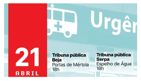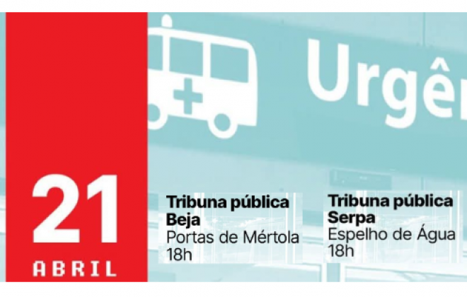 Beja e Serpa acolhem, esta tarde, pelas 18.00 horas, uma Tribuna Pública, em defesa do Serviço Nacional de Saúde (SNS). Em Beja, o protesto decorre nas Portas de Mértola, em Serpa, no Espelho de Água.