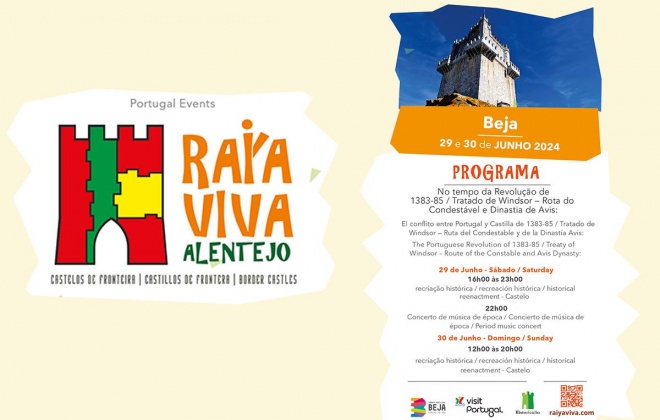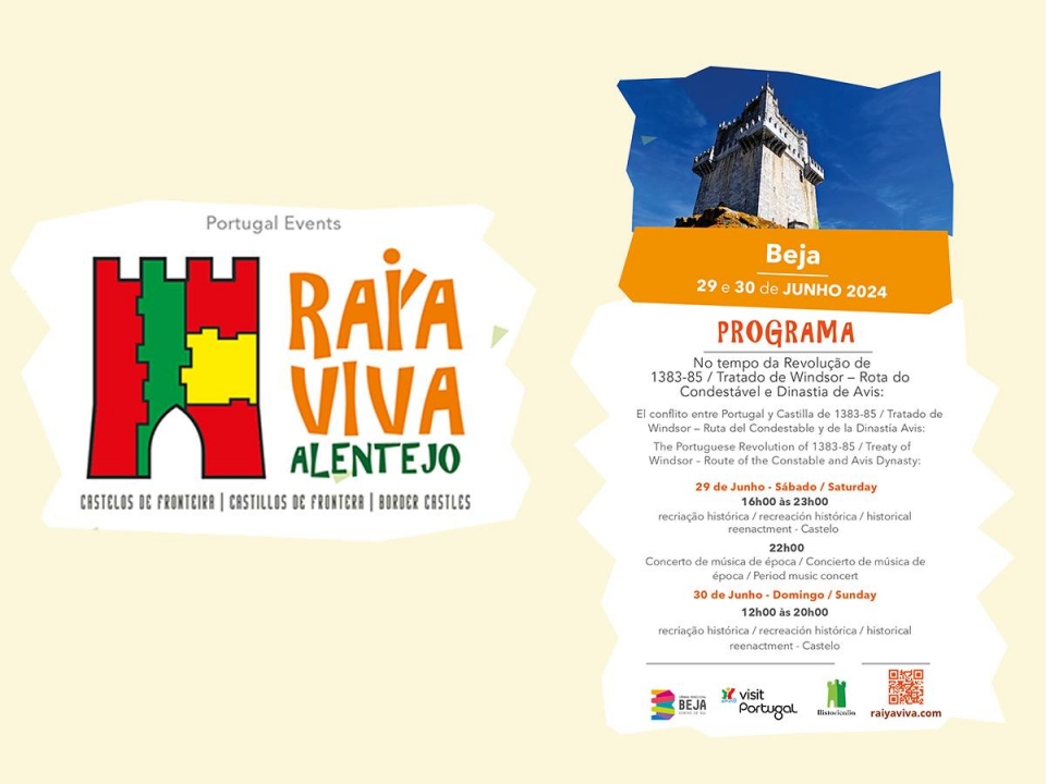 Nos dias 29 e 30 de junho, o Castelo de Beja recebe o evento “Castelos e Fortalezas de Fronteira do Alentejo – Raiya Viva!”, inserido no programa “Portugal Events” do Turismo de Portugal 2024. O projeto chega a seis locais históricos alentejanos - Castelo de Vide, Ouguela, Beja, Arronches, Terena e Noudar, e leva-os a épocas passadas.