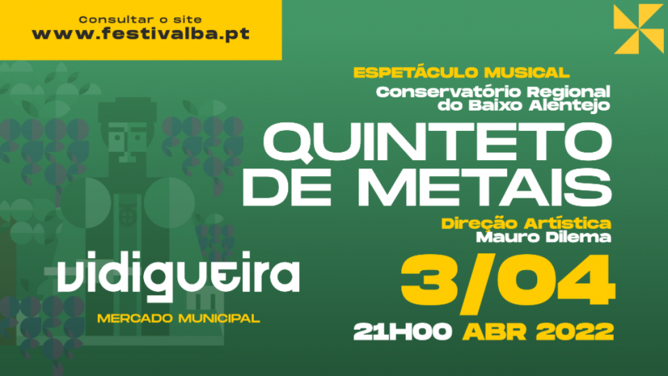 O Quinteto de Metais do Conservatório Regional do Baixo Alentejo atua, hoje, na vila de Vidigueira num concerto integrado no Festival BA - Cultura em Rede.