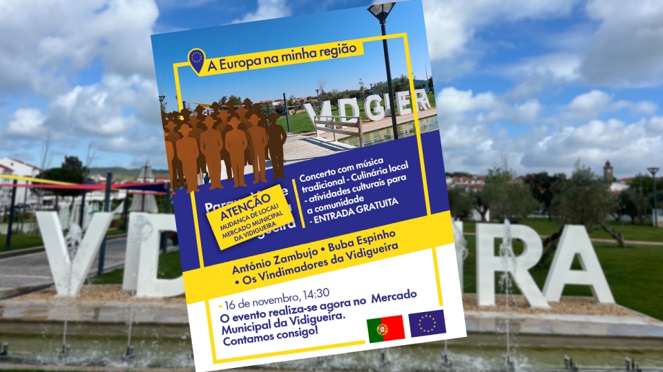 A previsão de condições meteorológicas adversas para domingo, 16 de novembro, levou à alteração do local do concerto “Ecoando a Voz do Alentejo”, inicialmente programado para o Parque Verde Urbano de Vidigueira. O evento decorrerá agora no Mercado Municipal de Vidigueira, no Largo Frei António das Chagas, mantendo integralmente o programa anunciado.