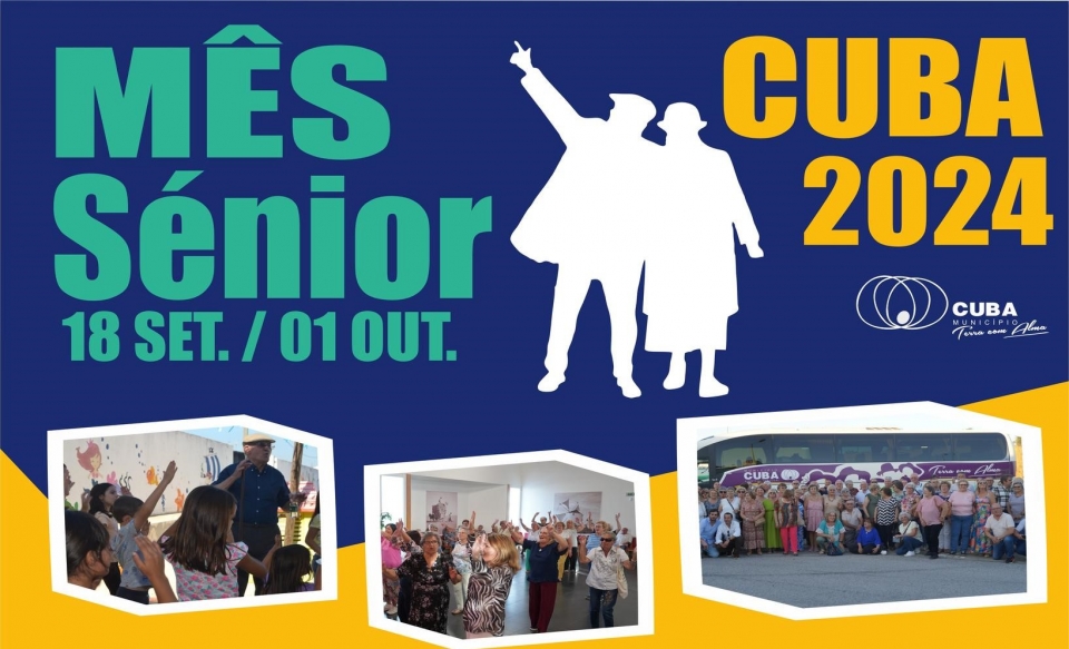 Até 1 de outubro, a Câmara Municipal de Cuba organiza a edição de 2024 do “Mês Sénior”, evento que celebra o Dia Internacional do Idoso, com um conjunto de atividades culturais e desportivas, pelas quatro freguesias do concelho.