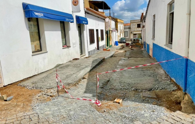 As obras na Rua da Amoreira, em Cuba, estão a decorrer. Uma intervenção que segundo o município, “está planeada há mais de 20 anos com o objetivo de criar condições adequadas à implementação de esplanadas pelos estabelecimentos de bebidas que ali se situam.”