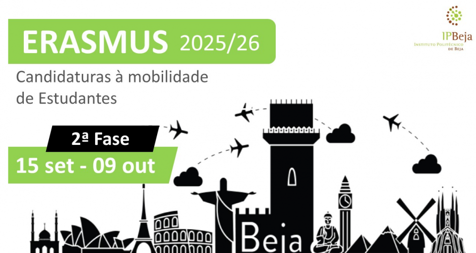O IPBeja tem a decorrer, até 9 de outubro, a 2ª Fase de Candidaturas à Mobilidade Académica de Estudantes, no IPBeja.