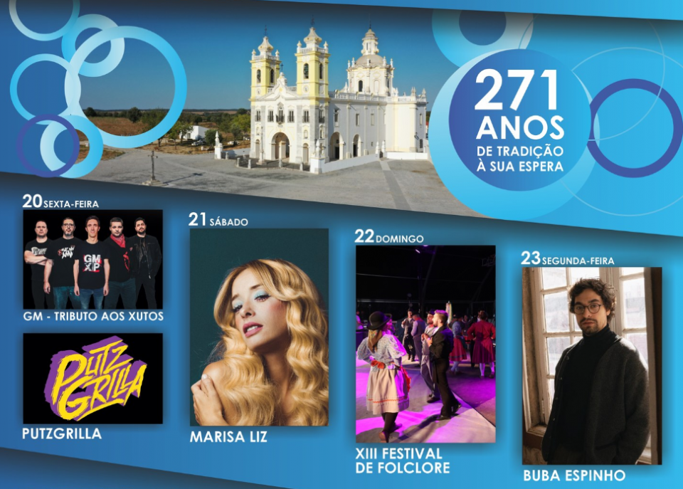 Ao longo de quatro dias, junto ao Santuário de Nª Sr.ª D’Aires, em Viana do Alentejo, voltam a ser esperadas milhares de pessoas que poderão desfrutar da programação musical, do artesanato, da gastronomia e das manifestações religiosas que o certame tem para oferecer, a par da tradicional feira franca.