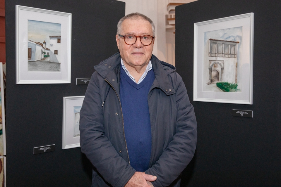Esta exposição de pintura apresenta um conjunto de “Olhares” sobre lugares, recantos ou pormenores arquitetónicos”. E, neste âmbito, Moura está cheia de “cantos, ruelas e edifícios, que conservam todo o seu património histórico, construído de pedra e de
