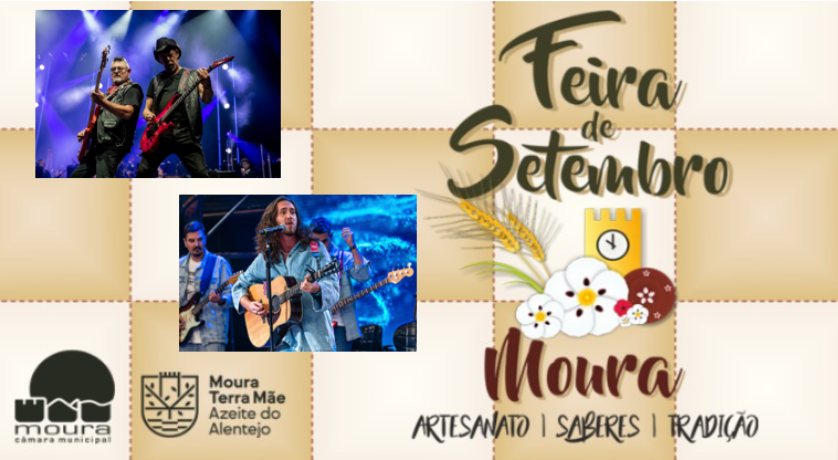 A Feira de Setembro-Artesanato, Saberes e Tradição está de regresso, a partir de quinta-feira e até domingo, ao Parque Municipal de Feiras e Exposições do Concelho de Moura. Xutos & Pontapés e Vítor Kley são os cabeças de cartaz desta edição.
