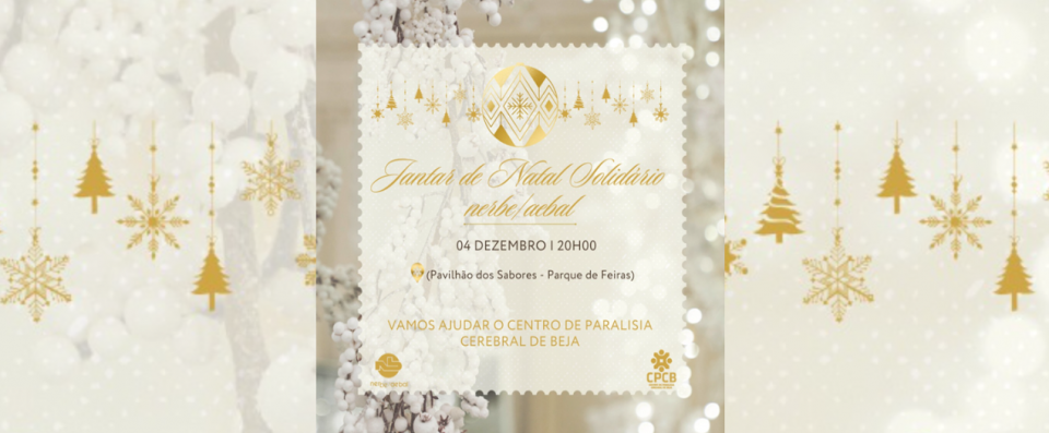 O NERBE/AEBAL realiza, no dia 4 de dezembro, pelas 20.00 horas, no Pavilhão dos Sabores, no Parque de Feiras e Exposições de Beja, um Jantar de Natal Solidário, a favor do Centro de Paralisia Cerebral de Beja (CPCB).