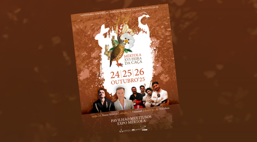 Nuno Ribeiro, Emanuel e Vizinhos são os cabeças de cartaz da XVI Feira da Caça que vai decorrer, entre 24 e 26 de outubro, no Pavilhão Multiusos Expo Mértola.