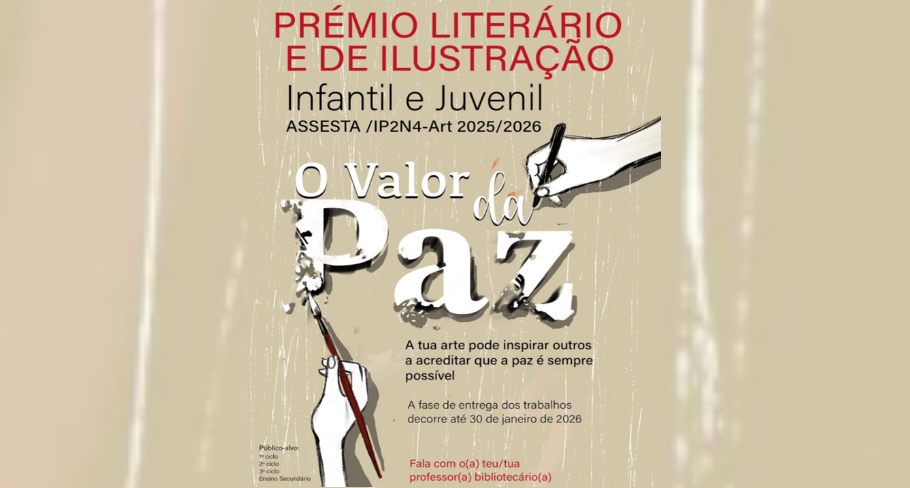 O Prémio Literário e de Ilustração Infantil e Juvenil ASSESTA /IP2N4-Art tem inscrições abertas. “O Valor da Paz - O valor da paz na vida individual, na escola, na comunidade e no mundo” é o tema deste ano letivo e os trabalhos podem ser entregues até ao dia 30 de janeiro de 2026.