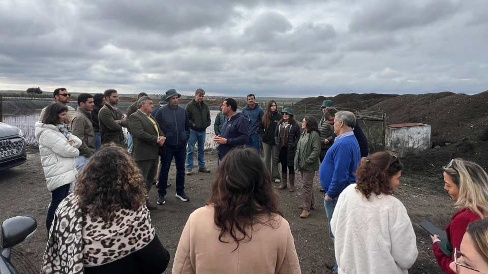 A ação decorreu na Herdade da Figueirinha, no concelho de Beja, e centrou-se na partilha de boas práticas entre empresas, com destaque para o projeto de compostagem implementado naquela exploração agrícola. A solução apresentada permite transformar resíduos orgânicos em recursos úteis para a melhoria da fertilidade do solo, integrando-se no ciclo produtivo e contribuindo para a redução de desperdícios e a valorização de subprodutos.