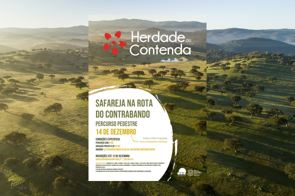“Safareja, na Rota do Contrabando” é o tema do novo percurso da Herdade da Contenda, que se realiza este sábado. É a última iniciativa inserida no plano anual de percursos pedestres da Herdade da Contenda, realizado durante este ano de 2024.