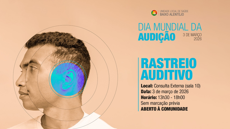 3 de março, hoje é o Dia Mundial da Audição e a Unidade Local de Saúde do Baixo Alentejo (ULSBA) assinala a data com a realização de um rastreio auditivo dirigido à população.