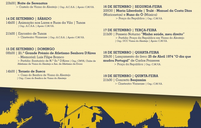 Viana do Alentejo prepara-se para receber a “Semana Cultural”, de 13 a 19 de setembro, o certame que antecede a centenária Feira D’Aires.
