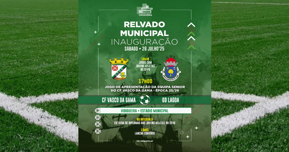 O jogo de apresentação da equipa sénior do CF Vasco da Gama frente ao GD Lagoa, agendado para as 17.00 horas, marca a inauguração do novo relvado do Estádio Municipal de Vidigueira.