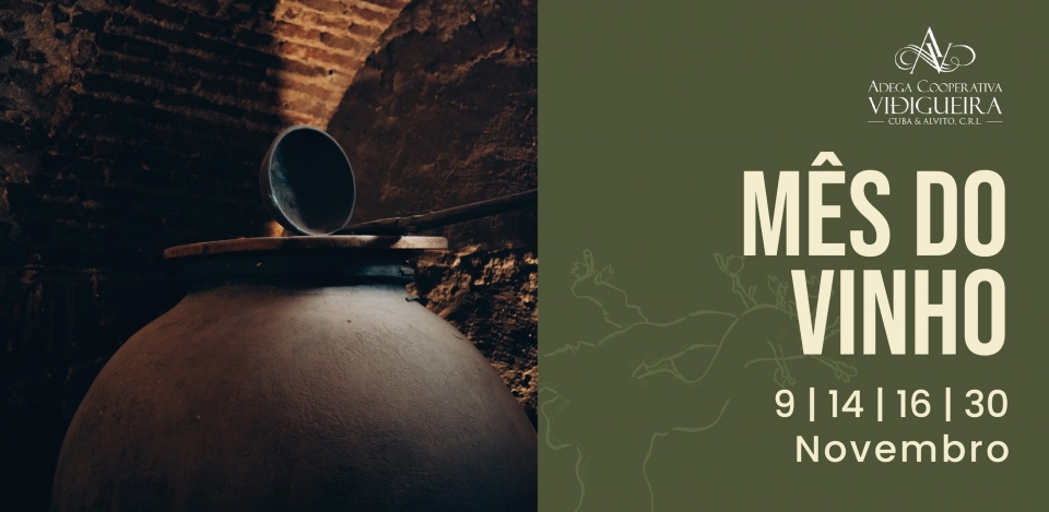 A Adega Cooperativa de Vidigueira, Cuba e Alvito celebra, mais uma vez, o Mês do Vinho. Este ano, o programa estende-se até ao início de dezembro e destacam-se eventos especiais, que exploram a essência da produção e celebram o Vinho de Talha, com momentos de degustação, convívio e homenagem à cultura alentejana.